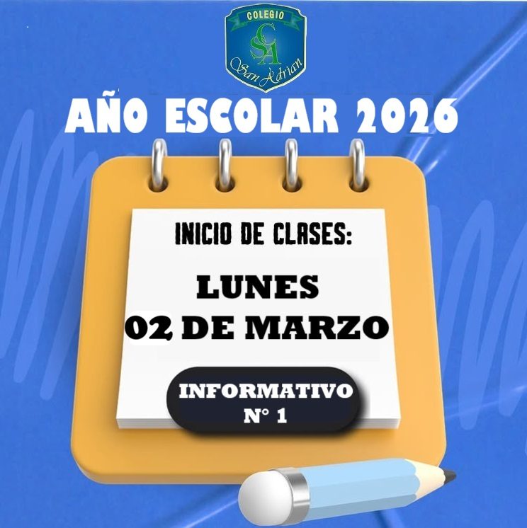 Desde su fundación en el año 1996, el Colegio San Adrián de Quilicura ha tenido como objetivo principal el consolidarse como una alternativa educacional íntegra y de calidad para la comunidad. Si bien este objetivo implica aspectos académicos, sus fundamentos se sustentan esencialmente en los componentes que hacen del ser humano no sólo una persona culta o intelectual, si no que en aquellos que lo convierten en un ciudadano de buena voluntad, capaz de defender los valores y principios que considera imprescindibles para su vida y que aporta en forma permanente a la construcción de la sociedad en la que desea vivir.
