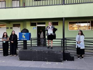 Finalmente, las Coordinadoras de Convivencia presentaron un hermoso mensaje de Gabriela Mistral: “Enseñar siempre: en el patio y en la calle como en la sala de clase. Enseñar con la actitud, el gesto y la palabra”, recordando su profunda vocación de maestra.