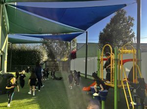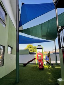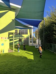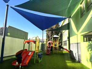 En los patios y zonas de recreación de los niveles iniciales, también se realizó una importante inversión para mejorarlos, instalando toldos vela tensados, que permitirán a los niños y niñas, disfrutar de recreos bajo la sombra. Se renovó en su totalidad el pasto sintético, añadiendo incluso un sector más, al total de área que tienen disponible, garantizando así un espacio de relajación óptimo que favorezca el aprendizaje.