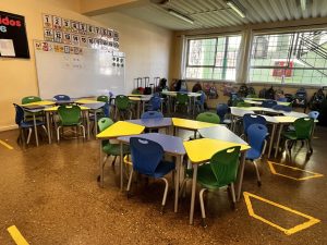 Para los niveles iniciales, se adquirieron nuevas sillas y mesas, que destacan por su funcionalidad, y que facilitan el trabajo individual o grupal, según se requiera, haciendo de las clases más participativas y dinámicas. De igual forma, se concretó la completa remodelación de los baños correspondientes, ofreciéndo a los/las estudiantes espacios seguros, cómodos, y acogedores.