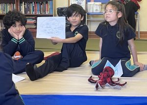 El día 14 de octubre, los y las integrantes del taller Exploradores submarinos realizaron una hermosa presentación en el CRA del Colegio.  Dirigidos por su capitana, la Profesora Valeria Hidalgo y acompañados por la asistente del taller, la Sra. Jimena Mosquera, compartieron con los/las asistentes, los aprendizajes adquiridos durante este año, convirtiéndose así en una ocasión especial para rendir un homenaje al océano y disfrutar juntos de un lindo momento en comunidad.