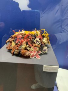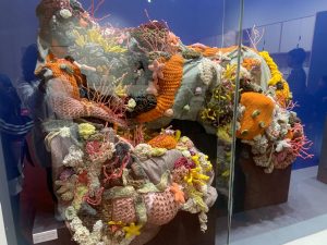 Esta exposición surgió de la unión de dos proyectos “Tramares, tejiendo arrecifes”, desarrollado por el Núcleo Milenio NUTME, y “Tramares Biobasado” desarrollado por NUTME en colaboración con Diseño UC. La muestra conecta ciencia, arte y artesanía, dando como resultado: un colorido universo de especies submarinas, representadas en crochet, realizadas por tejedoras de la V región.