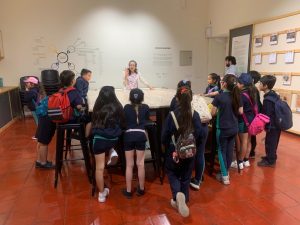 ¿Te imaginas un arrecife tejido a crochet o construido con biomateriales? Esto y mucho más pudieron disfrutar los integrantes del taller “Exploradores submarinos” en la salida pedagógica que realizaron con su profesora Valeria Hidalgo y acompañados de la Inspectora Tabita Quezada, el día 24 de noviembre a la exposición “Tramares. Comunidades textiles para el futuro”, en la Materioteca de Artesanía UC del Centro Cultural Montecarmelo, en el marco de la 2ª Bienal de Arte Textil (BAT 2025) .